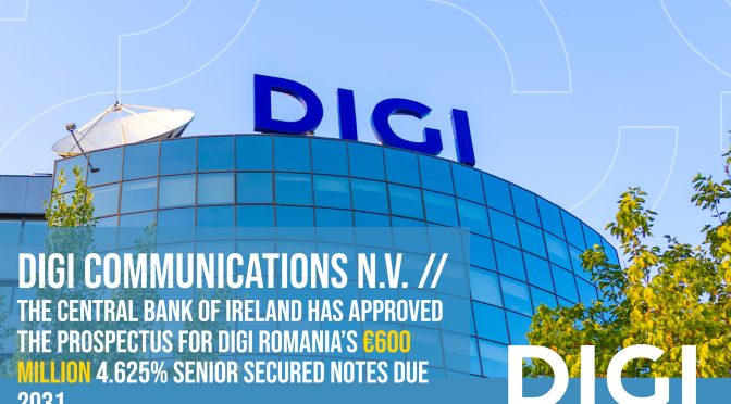 BUCHAREST, Romania, 10-Nov-2025 — /EuropaWire/ — Digi Communications N.V. (“DIGI”), one of the leading European telecommunications companies, listed on the Bucharest Stock Exchange, would like to inform the market that on 7 November 2025, the Central Bank of Ireland has approved the prospectus for the admission to trading of the EUR 600 million 4.625% senior secured notes due 2031 (ISIN XS3216614084) issued by Digi Romania on 29 October (the “Notes”) and Euronext Dublin has approved the admission to trading of the Notes on the regulated market operated by it. The Notes are thus listed on the Official List of Euronext Dublin and traded on its regulated market.